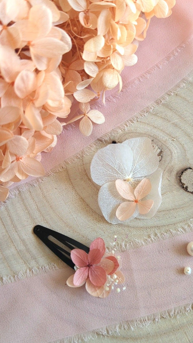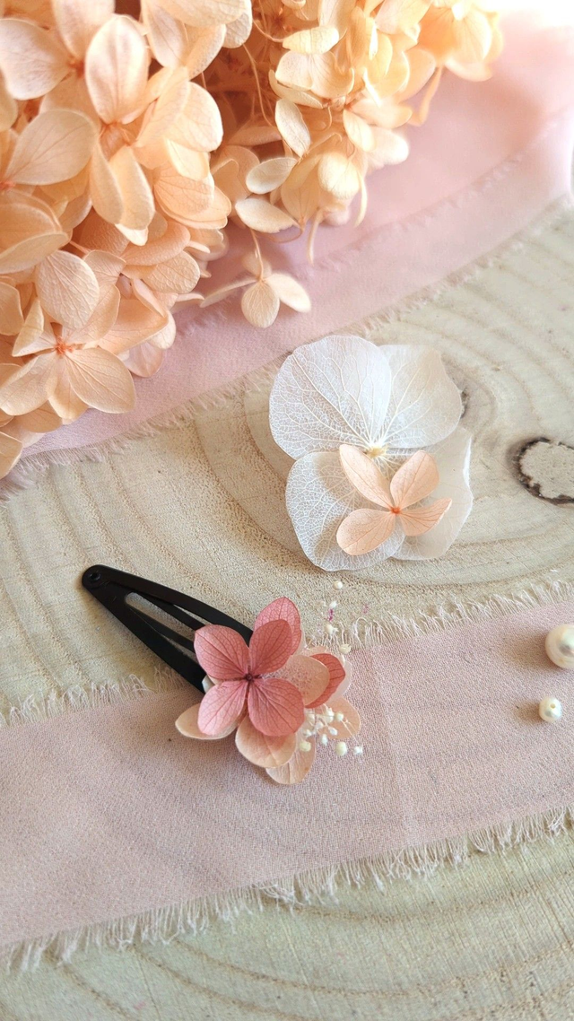 Ajoutez une touche florale, colorée et bohème à votre coiffure grâce à cette barrette en fleurs séchées, pensée pour votre cortège de mariage. Chaque pièce est minutieusement confectionnée à la main, avec des fleurs séchées et stabilisées.