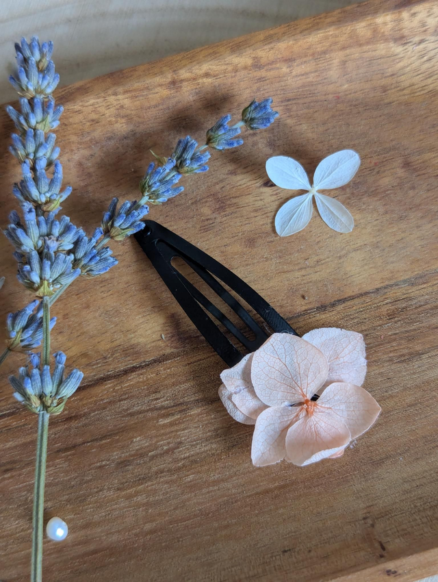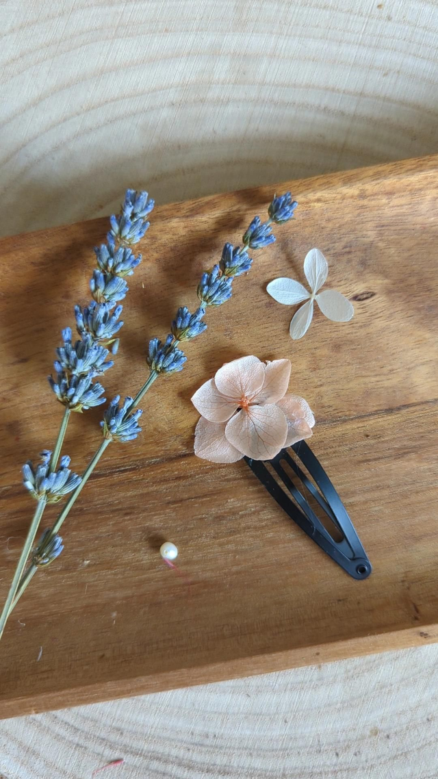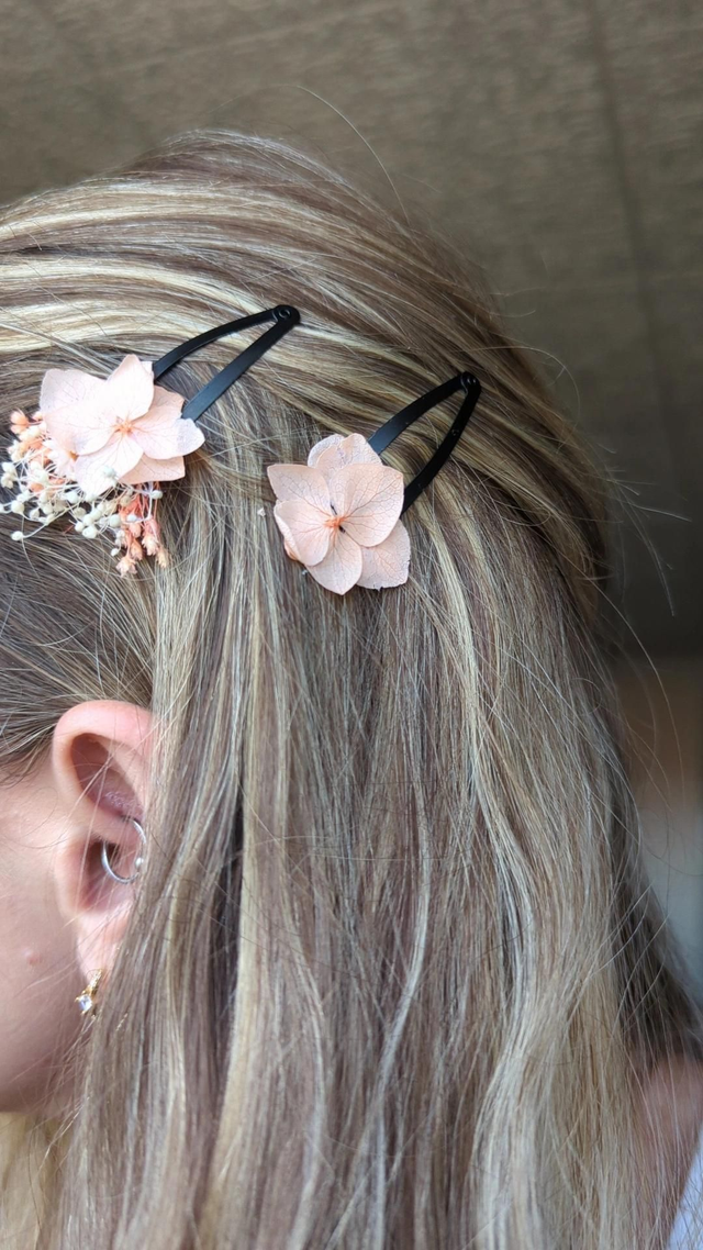 Ajoutez une touche florale, colorée et bohème à votre coiffure grâce à cette barrette en fleurs séchées, pensée pour votre cortège de mariage. Chaque pièce est minutieusement confectionnée à la main, avec des fleurs séchées et stabilisées.
