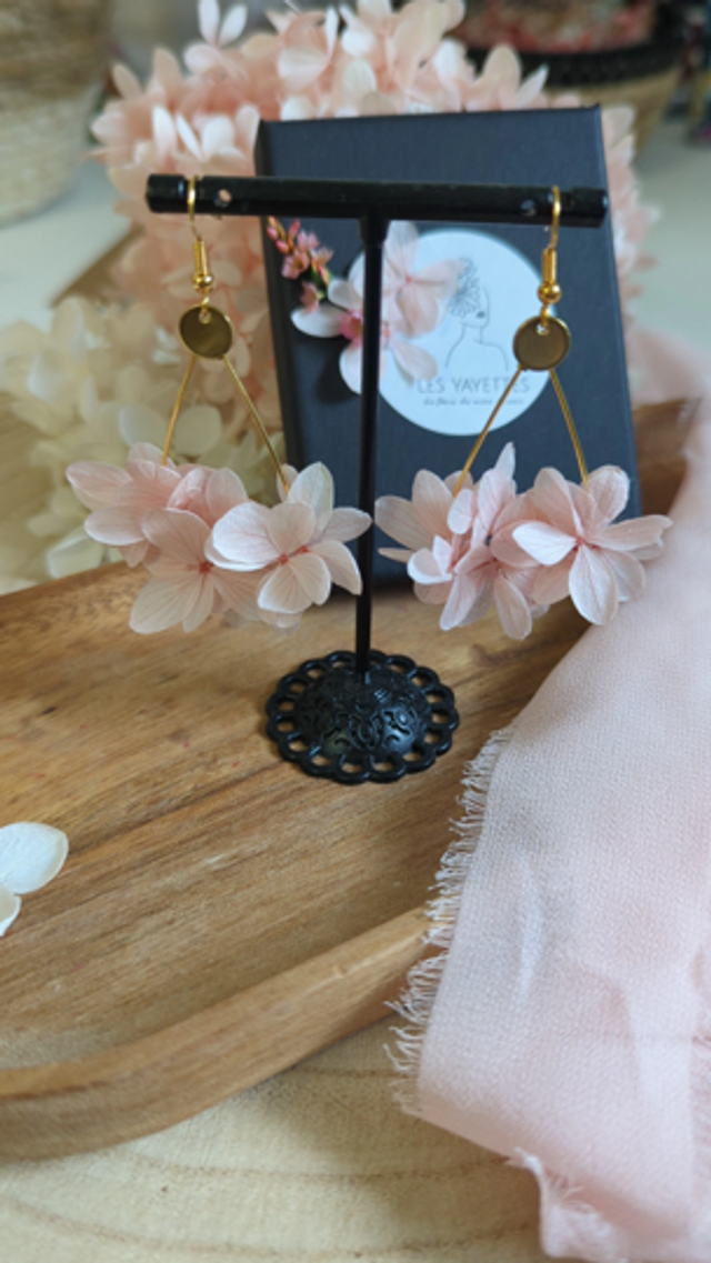 Boucles d'oreilles Amour d'hortensia - Rose pâle
