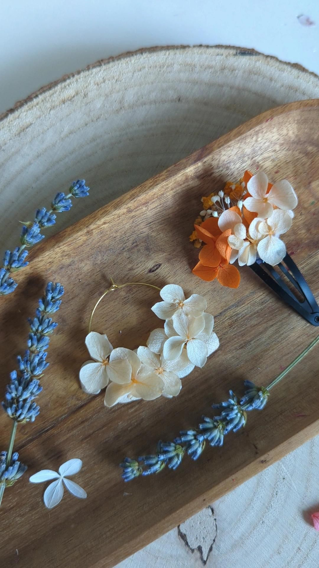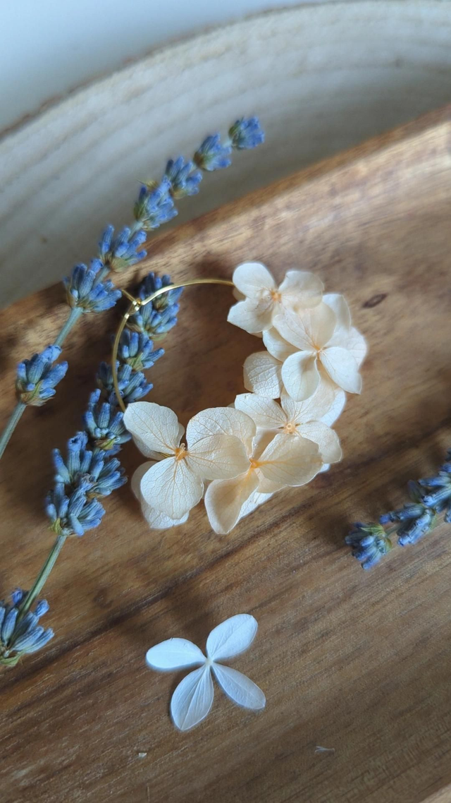 🌸 Ajoutez une touche d'élégance et de raffinement à votre look avec nos boucles d'oreilles, sublimées par de magnifiques fleurs d'hortensia stabilisées. Ces créations artisanales sont conçues pour celles qui cherchent à porter un bijou unique, naturel et intemporel. Parfaites pour une occasion spéciale, un mariage ou tout simplement pour apporter une touche florale à vos tenues quotidiennes.