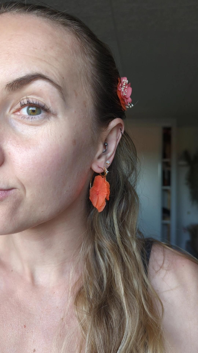 Chaque paire est fabriquée à la main avec soin et passion, alliant des matériaux durables comme l'acier inoxydable et des fleurs stabilisées, qui ne se faneront jamais. Chaque paire peut légèrement varier en fonction des fleurs naturelles, créant un bijou unique à chaque commande 🌷