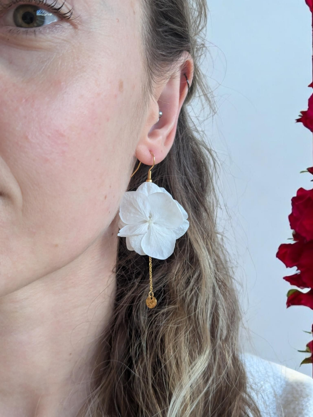 🌸 Ajoutez une touche d'élégance et de raffinement à votre look avec nos boucles d'oreilles, sublimées par de magnifiques fleurs d'hortensia stabilisées. Ces créations artisanales sont conçues pour celles qui cherchent à porter un bijou unique, naturel et intemporel. Parfaites pour une occasion spéciale comme un mariage ou tout simplement pour apporter une touche florale à vos tenues quotidiennes.