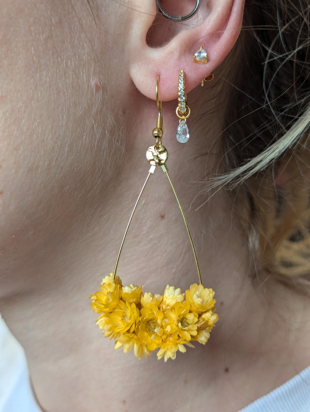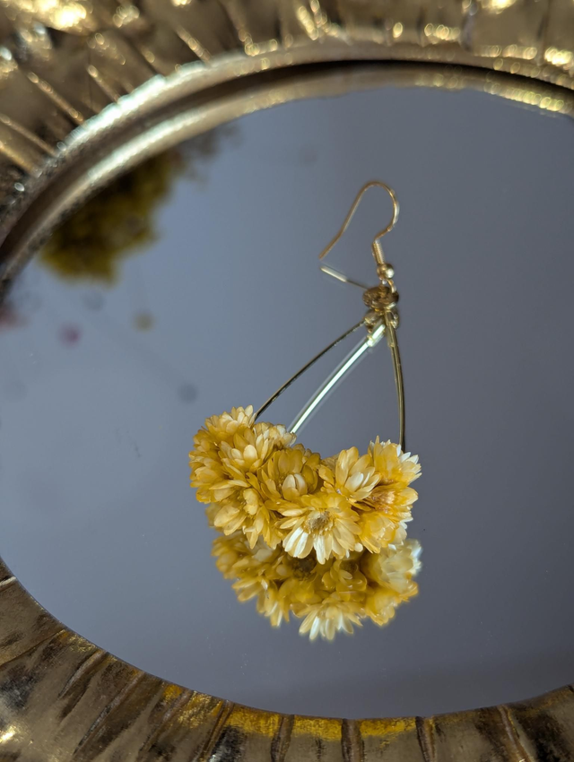 Chaque paire est fabriquée à la main avec soin et passion, alliant des matériaux durables comme l'acier inoxydable et des fleurs stabilisées, qui ne se faneront jamais. Chaque paire peut légèrement varier en fonction des fleurs naturelles, créant un bijou unique à chaque commande 🌷