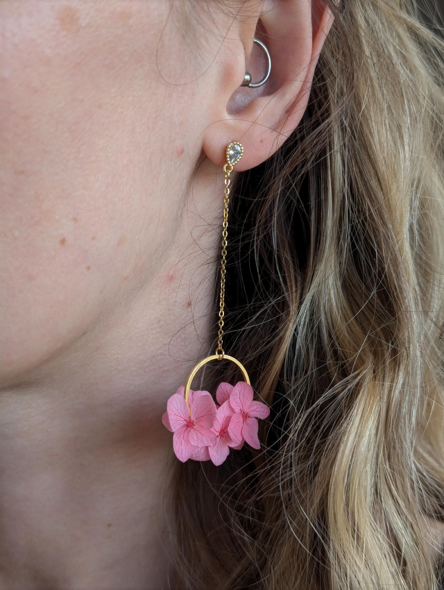 🌸 Ajoutez une touche d'élégance et de raffinement à votre look avec nos boucles d'oreilles, sublimées par de magnifiques fleurs d'hortensia stabilisées. Ces créations artisanales sont conçues pour celles qui cherchent à porter un bijou unique, naturel et intemporel. Parfaites pour une occasion spéciale, un mariage ou tout simplement pour apporter une touche florale à vos tenues quotidiennes.