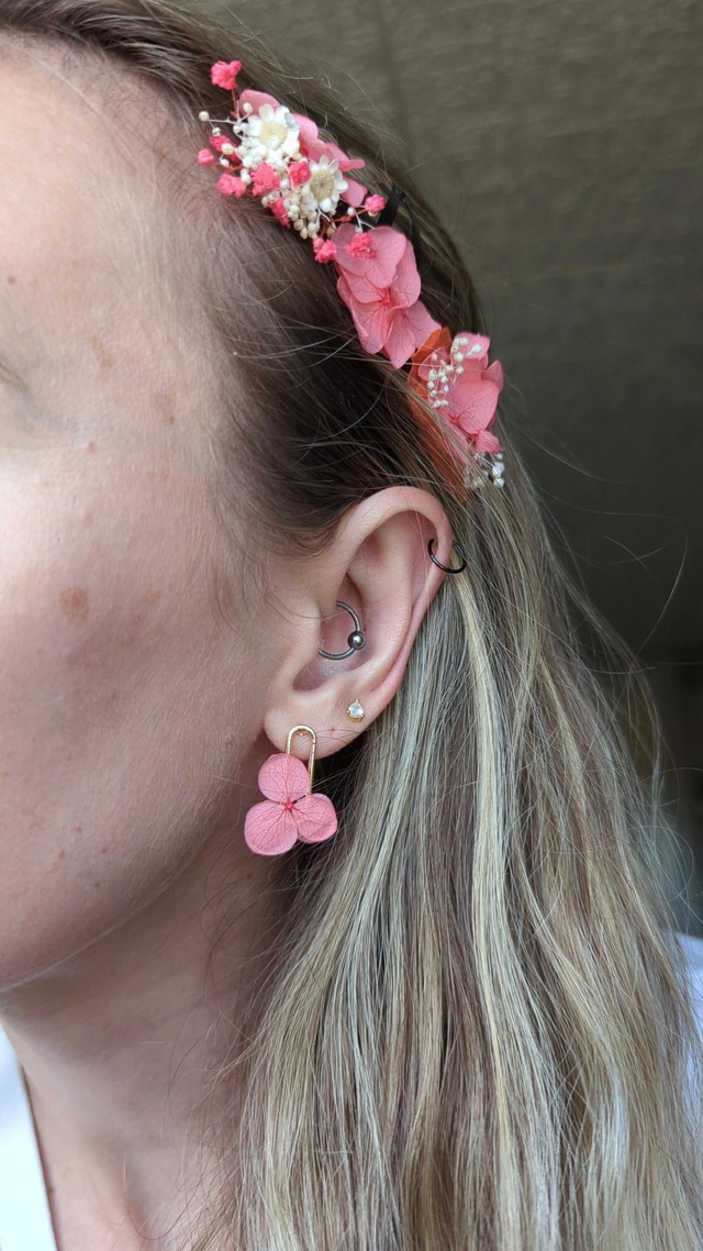 🌸 Ajoutez une touche d'élégance et de raffinement à votre look avec nos boucles d'oreilles, sublimées par de magnifiques fleurs d'hortensia stabilisées. Ces créations artisanales sont conçues pour celles qui cherchent à porter un bijou unique, naturel et intemporel. Parfaites pour une occasion spéciale, un mariage ou tout simplement pour apporter une touche florale à vos tenues quotidiennes.