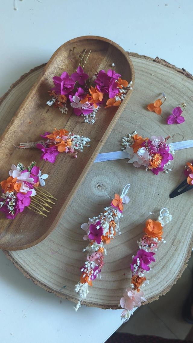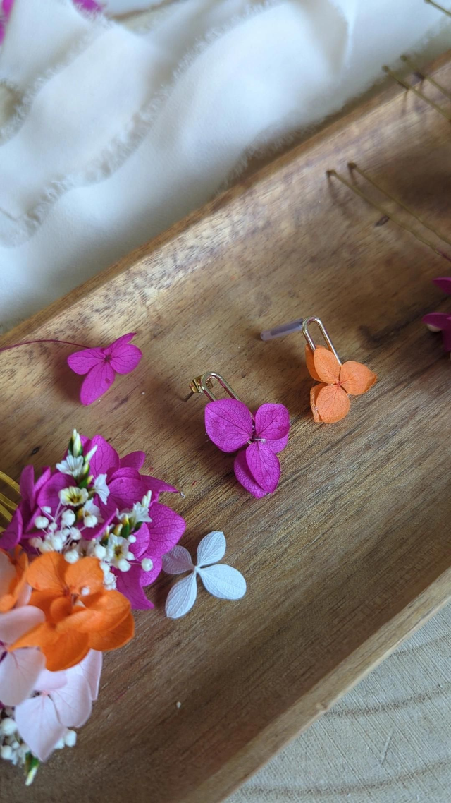 Chaque paire est fabriquée à la main avec soin et passion, alliant des matériaux durables comme l'acier inoxydable et des fleurs stabilisées, qui ne se faneront jamais. Chaque paire peut légèrement varier en fonction des fleurs naturelles, créant un bijou unique à chaque commande 🌷