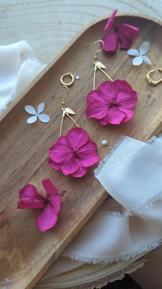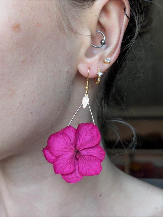 🌸 Ajoutez une touche d'élégance et de raffinement à votre look avec nos boucles d'oreilles, sublimées par de magnifiques fleurs d'hortensia stabilisées. Ces créations artisanales sont conçues pour celles qui cherchent à porter un bijou unique, naturel et intemporel. Parfaites pour une occasion spéciale, un mariage ou tout simplement pour apporter une touche florale à vos tenues quotidiennes.