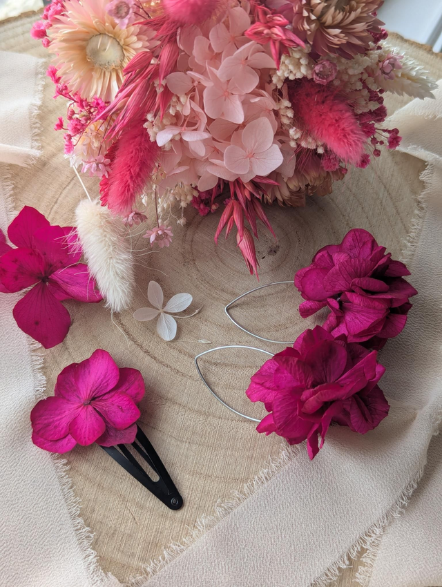 🌸 Ajoutez une touche d'élégance et de raffinement à votre look avec nos boucles d'oreilles, sublimées par de magnifiques fleurs d'hortensia stabilisées. Ces créations artisanales sont conçues pour celles qui cherchent à porter un bijou unique, naturel et intemporel. Parfaites pour une occasion spéciale, un mariage ou tout simplement pour apporter une touche florale à vos tenues quotidiennes.