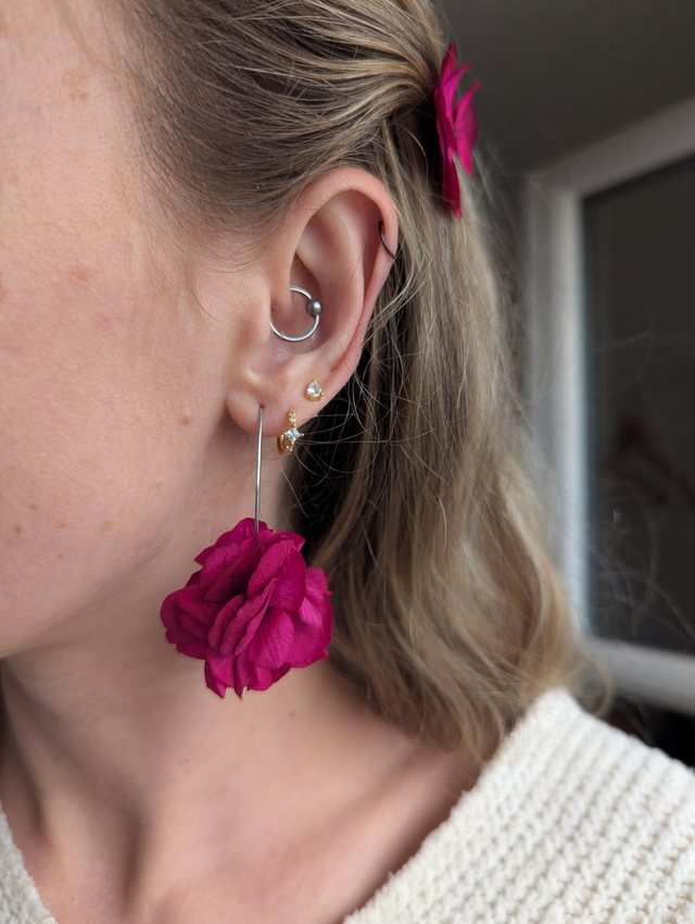 Chaque paire est fabriquée à la main avec soin et passion, alliant des matériaux durables comme l'acier inoxydable et des fleurs stabilisées, qui ne se faneront jamais. Chaque paire peut légèrement varier en fonction des fleurs naturelles, créant un bijou unique à chaque commande 🌷