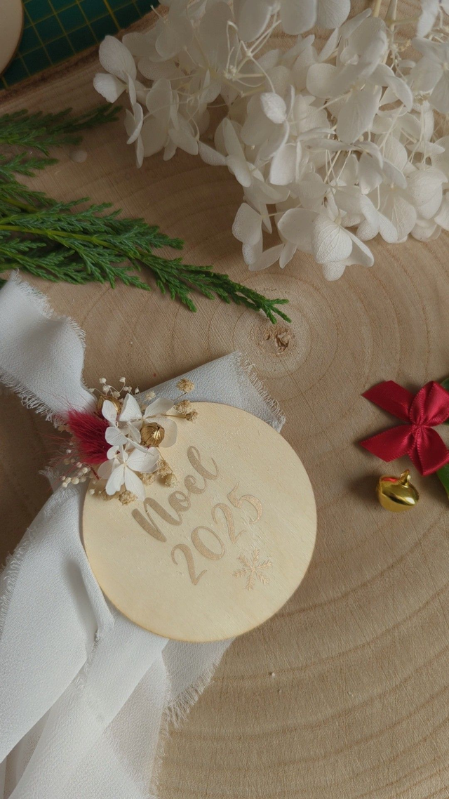 Ces boules de Noël en bois, ornées de fleurs séchées et stabilisées, transforment votre sapin en une véritable œuvre unique. Chaque création est faite à la main, avec des fleurs soigneusement choisies pour refléter l’esprit de Noël : chaleur, authenticité et poésie.