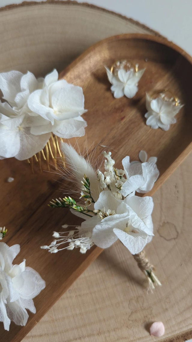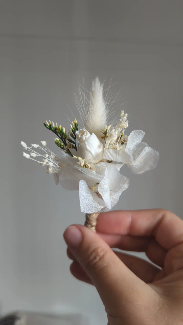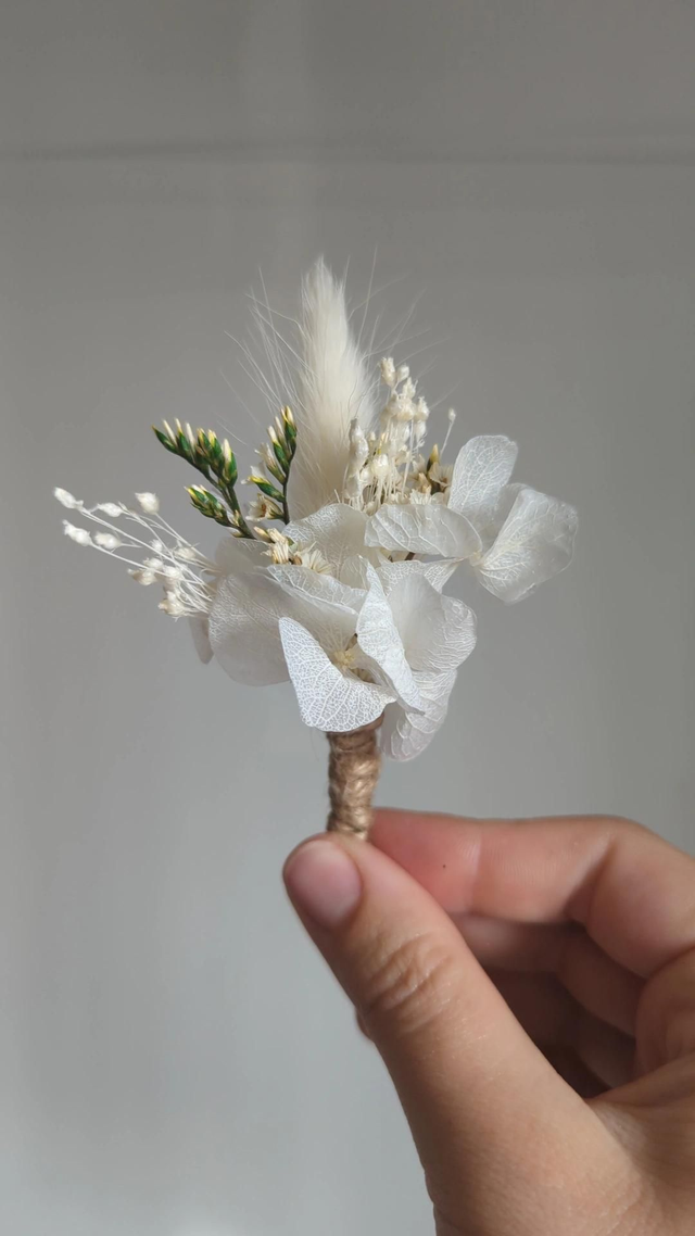 Originale, élégante et pratique : boutonnière avec épingle en fleurs séchées et stabilisées de la collection COTTON BLOOM, pensée pour les mariages fleuris !