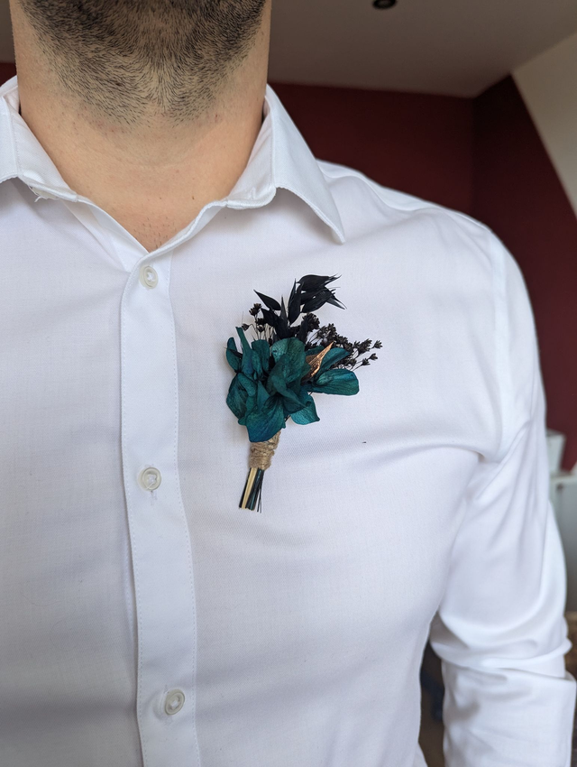 Ajoutez une touche d'élégance intemporelle à votre tenue avec cette boutonnière en fleurs séchées et stabilisées. Conçue autant pour les Hommes que pour les Femmes, cette pièce unique marie la beauté naturelle des fleurs avec la durabilité pour un souvenir éternel de VOTRE jour spécial.