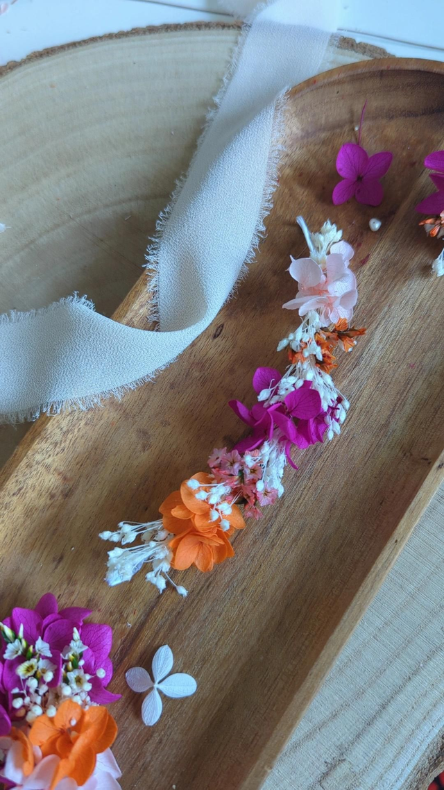 Chaque bracelet est entièrement réalisé à la main, avec soin, dans notre atelier de la Loire. Les compositions florales sont toutes uniques, dans un esprit bohème chic.