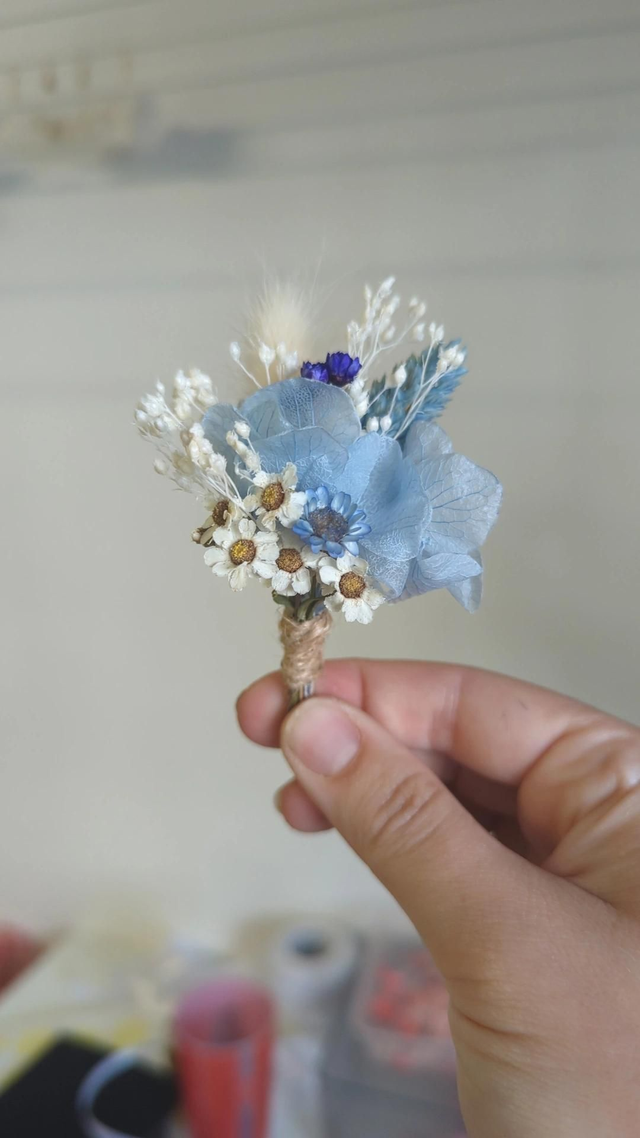🏵 Une boutonnière en fleurs séchées à piquer sur un vêtement, un ruban ou une décoration.