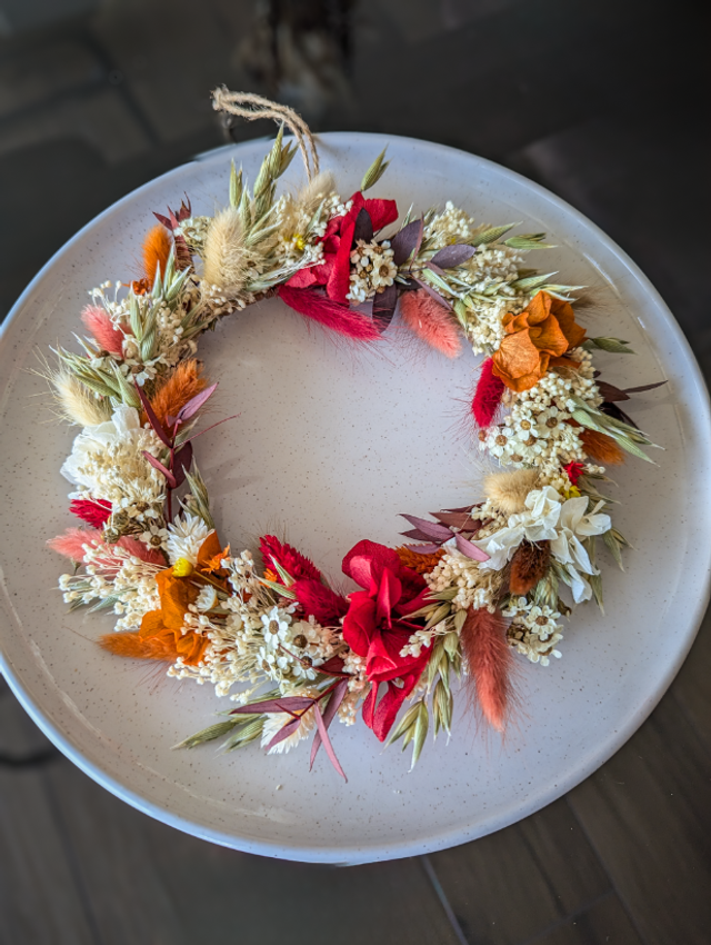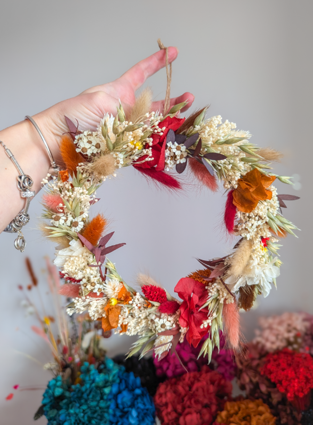 Couronne décorative en fleurs séchées - Eclats d'automne
