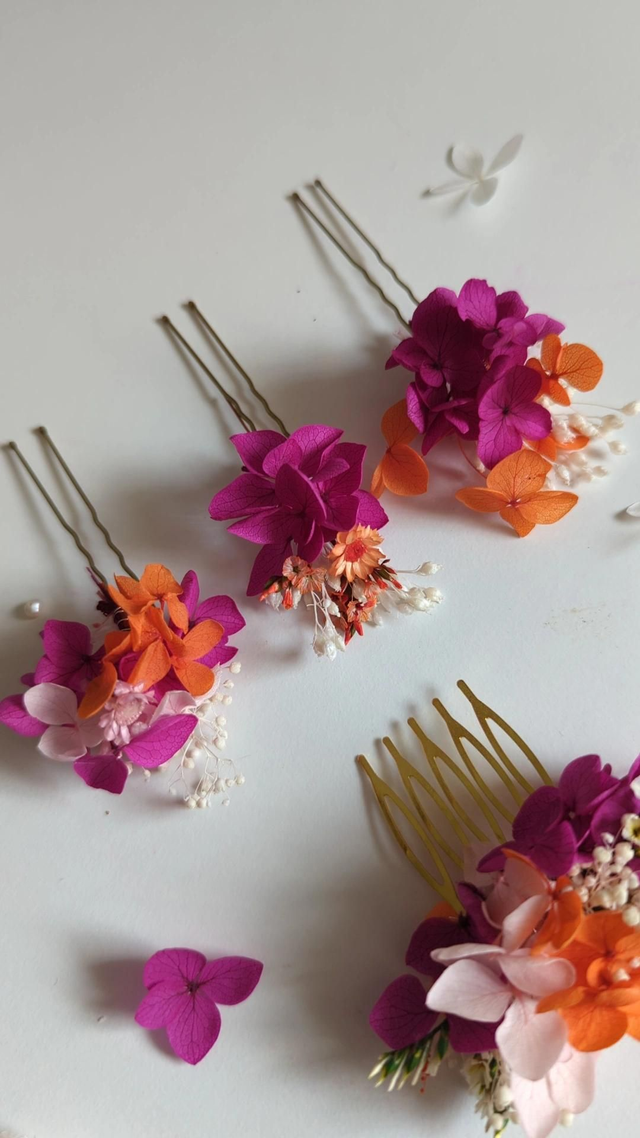 🌸 Composition d'épingles à chignon fuchsia, rose et orange