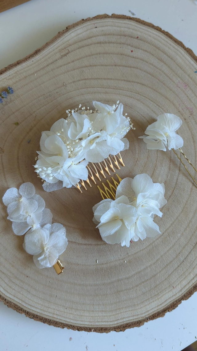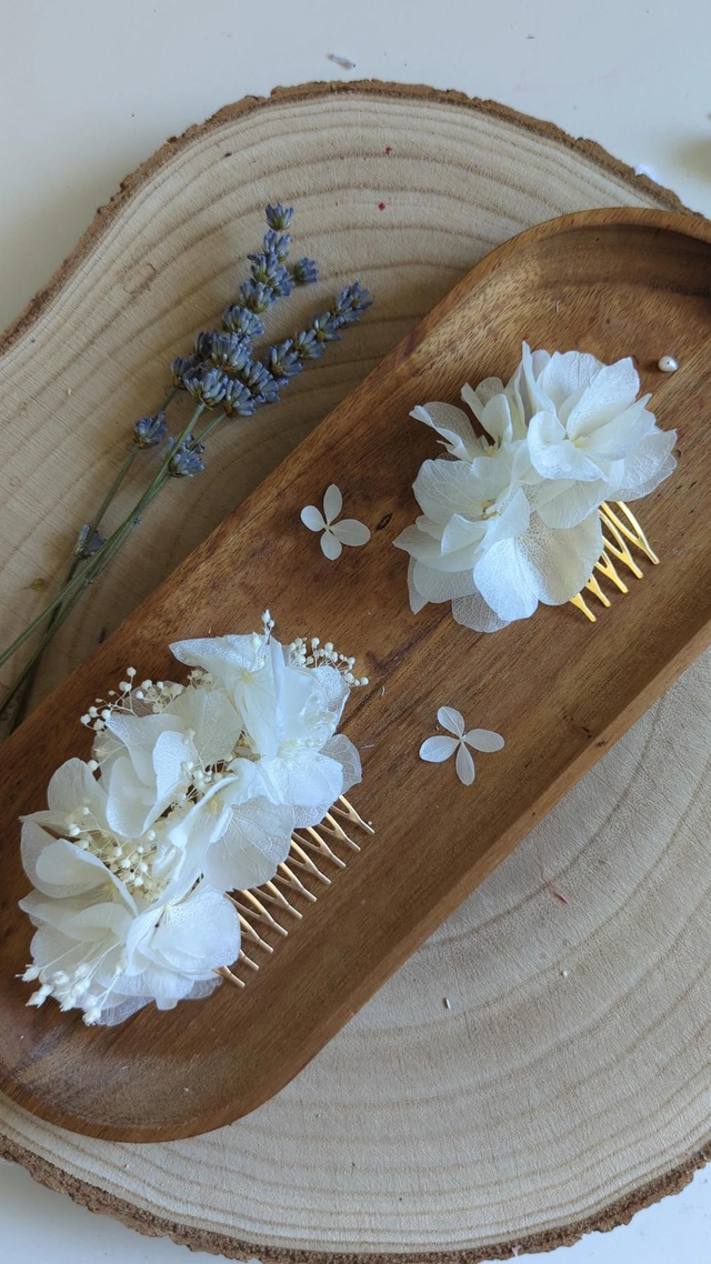 Glissé dans un chignon flou, une tresse ou une demi-attache, il apporte une touche de douceur et d’élégance à votre tenue. Léger, discret mais remarquable, il tiendra toute la journée, du "oui" jusqu’à la dernière danse.