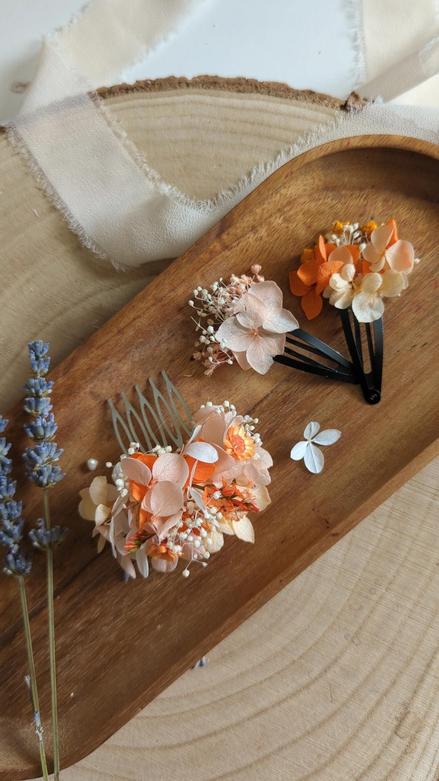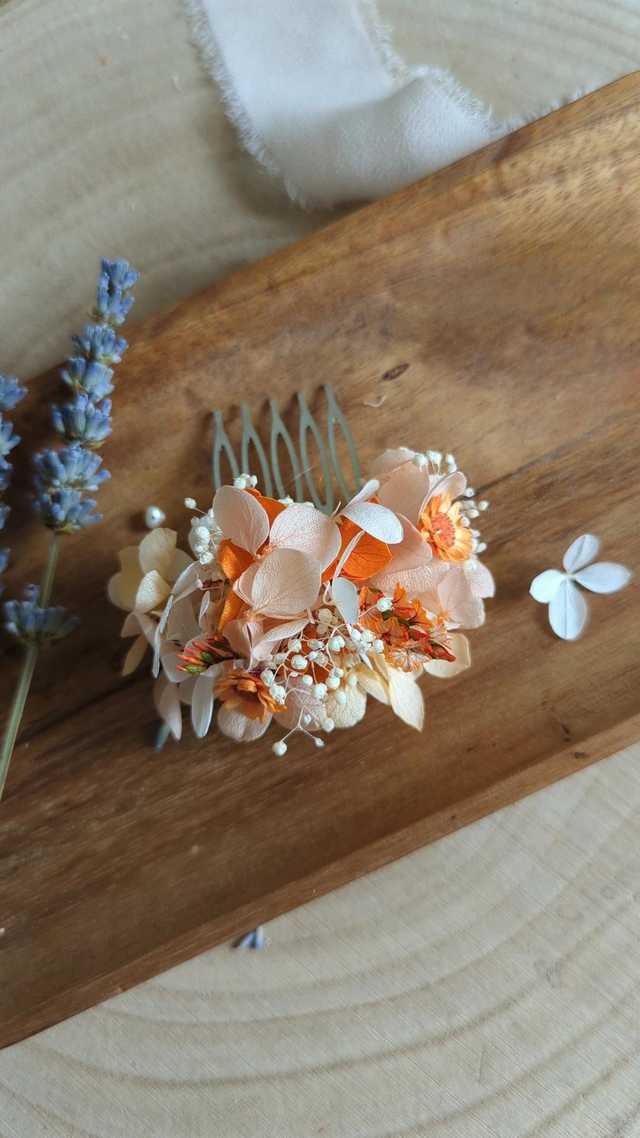 Parfait pour une mariée ou un cortège, il apporte une touche florale unique à un chignon, une tresse ou des cheveux lâchés. Chaque pièce est réalisée à la main avec des fleurs séchées et stabilisées aux couleurs éclatantes.