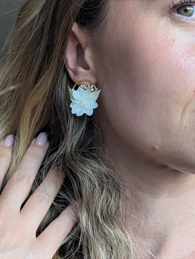 🌸 Ajoutez une touche d'élégance et de raffinement à votre look avec nos boucles d'oreilles, sublimées par de magnifiques fleurs d'hortensia stabilisées. Ces créations artisanales sont conçues pour celles qui cherchent à porter un bijou unique, naturel et intemporel. Parfaites pour une occasion spéciale comme un mariage ou tout simplement pour apporter une touche florale à vos tenues quotidiennes.